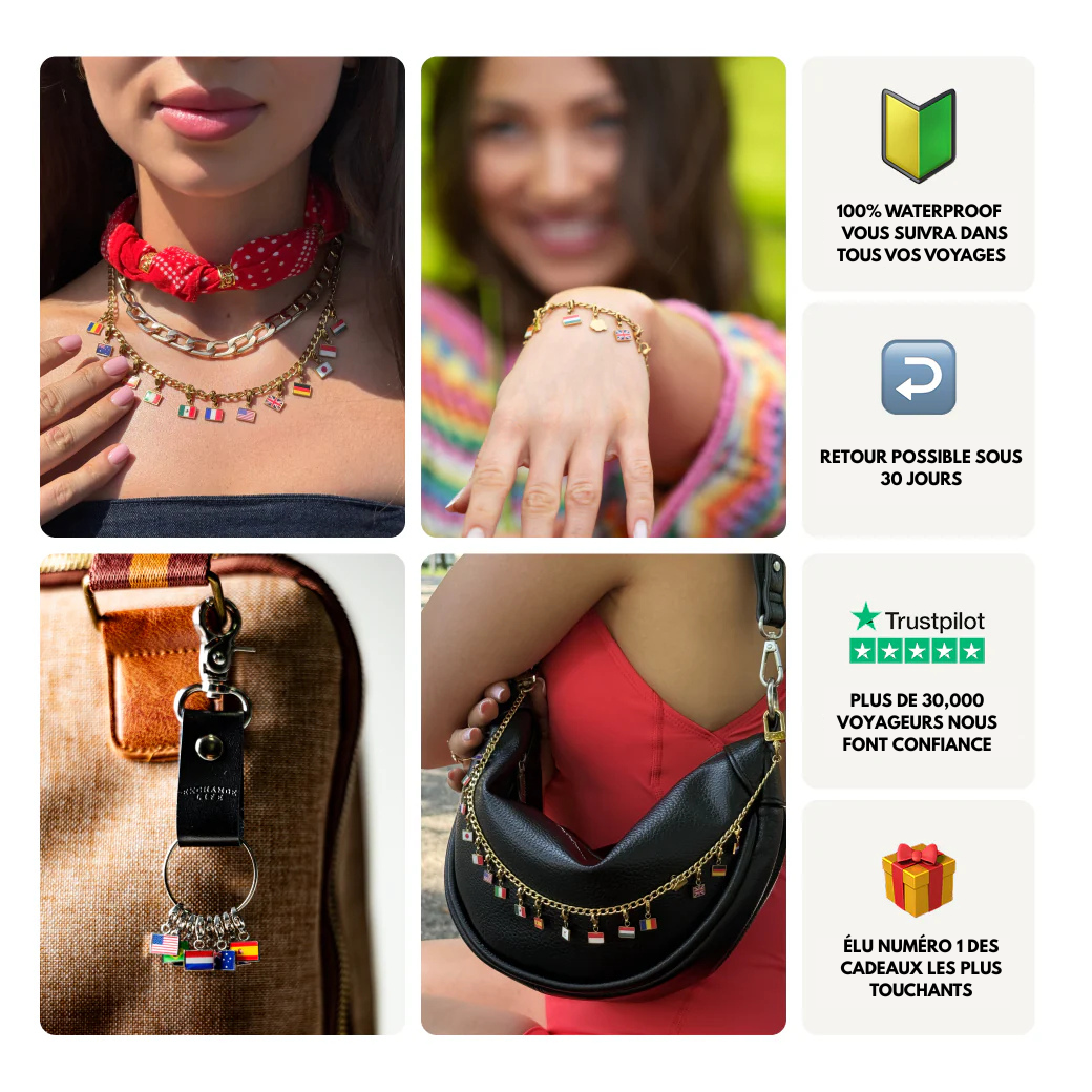 Country Charms™ t’invite à capturer les souvenirs de ta vie à travers une collection unique de pendentifs drapeaux et cartes 🌍.